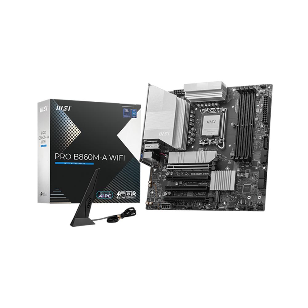 Материнская плата MSI PRO B860M-A WIFI B860, LGA1851, 4*DDR5, 4*PCIEx16, 3*M.2, 2*TypeC, 3*USB3.2Gen2, 6*USB3.2Gen1, 2*USB2.0, 4*SATA3.0, 5G, Type-C(DP), DP, HDMI, M-ATX, RTL