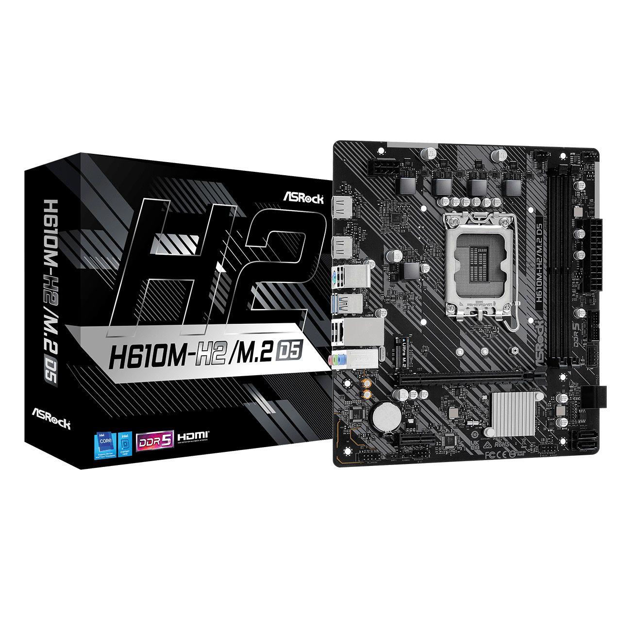 Материнская плата ASRock H610M-H2 / M.2 D5, Socket 1700, Intel®H610, 2xDDR5-4800, HDMI+HDMI, 1xPCI-Ex16, 1xPCI-Ex1, 4xSATA3, 1xM.2, 8Ch Audio, GLan, (4+2)xUSB2.0, (2+2)xUSB3.2, 1xPS / 2, mATX, RTL