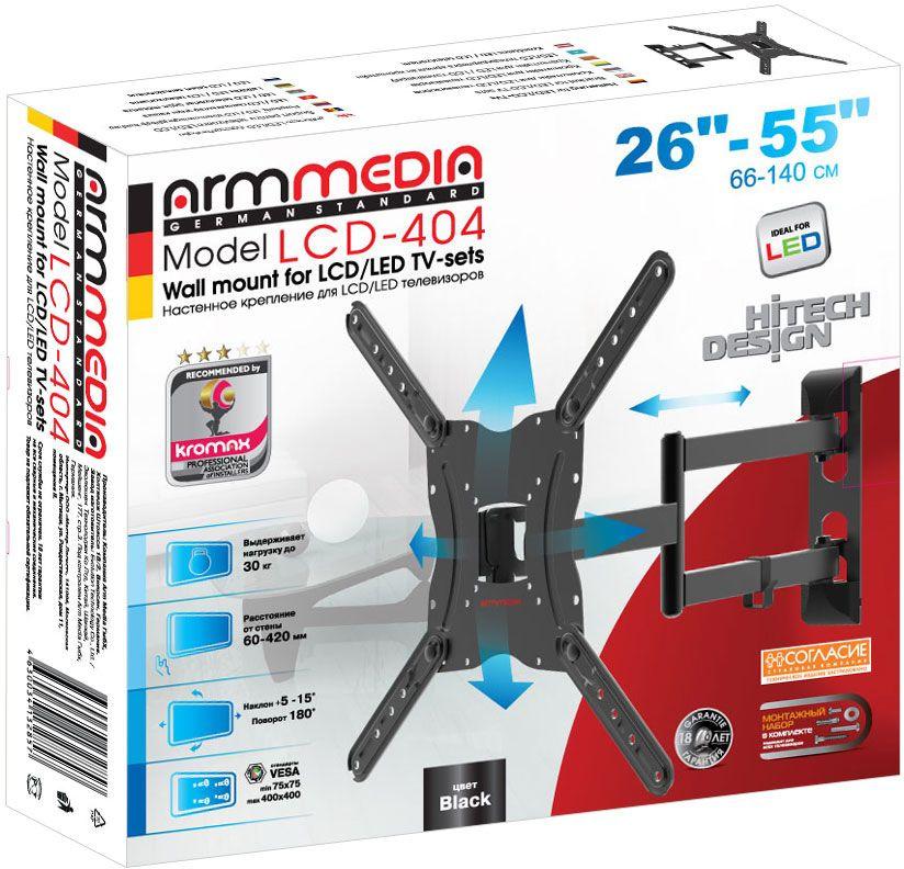 Кронштейн для телевизора Arm Media LCD-404 new черный 26"-55" макс.30кг настенный поворот и наклон
