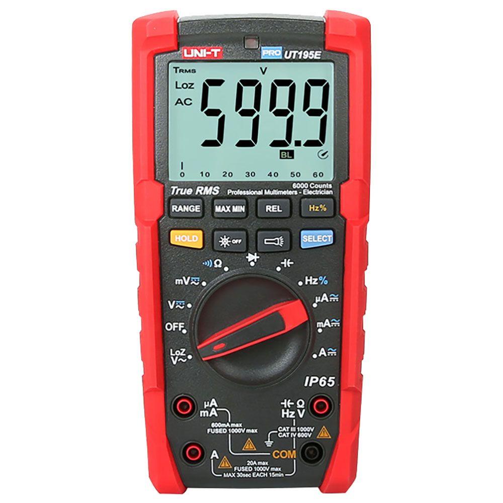 Профессиональный мультиметр UNI-T UT195E Напряжение постоянного / переменного тока (1000 В); постоянный / переменный ток (20А); Сопротивление (60 МОм); Емкость (60 мФ); Частота (10 МГц)