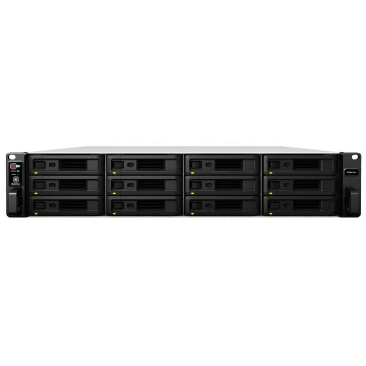 Система хранения данных Synology 2U / 12bay 8C 2,1GhzCPU / 8Gb(64) / RAID0,1,10,5,6 / upto 36HDD (2xRX1217(RP)) / 2xUSB / 4GbE+2x10GE / 2xPCIe / iSCSI / 2xIPcam(upto90) / 2xRPS / no rail / 1YW
