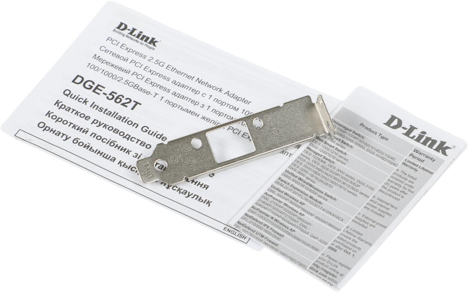 Сетевой адаптер 2.5G Ethernet D-Link DGE-562T DGE-562T / A PCI Express x1