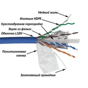 Кабель Кабель LANMASTER FTP, 4 пары, кат. 6A, с перегородкой, 500Mhz, LSZH, синий, 305 м