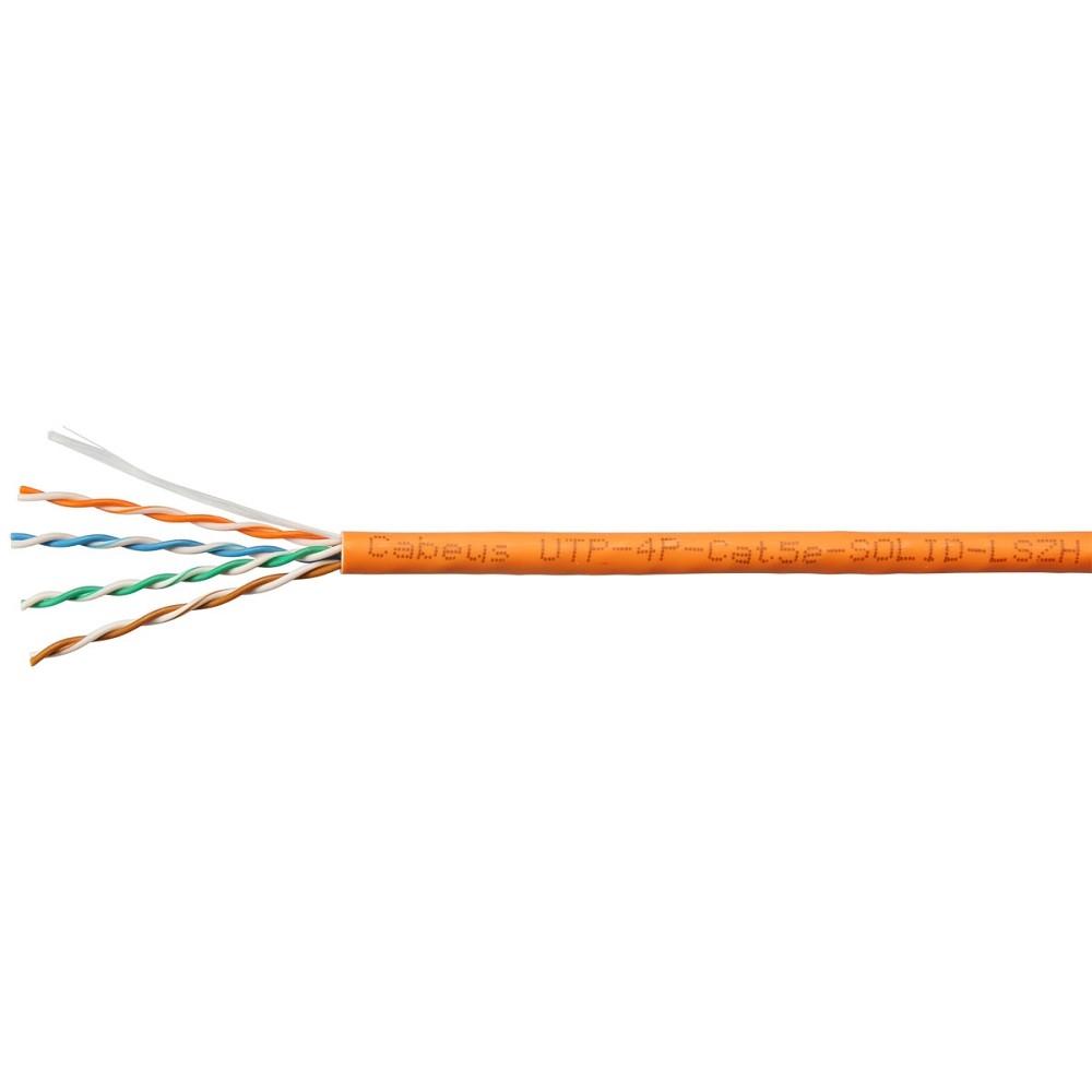Cabeus UTP-4P-Cat.5e-SOLID-LSZH Кабель витая пара UTP (U / UTP), категория 5e, 4 пары 0,51мм (24 AWG), одножильный, LSZH оранжевый (Low Smoke Zero Halogen) (305 м), системная гарантия 25 лет.