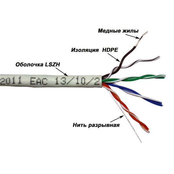 кабель Cabeus UTP-4P-Cat.5e-SOLID-LSZH-LIGHT Кабель витая пара UTP (U / UTP), категория 5e, 4 пары 0,47мм (24 AWG), одножильный, LSZH, нг(А)-HF, (305 м)