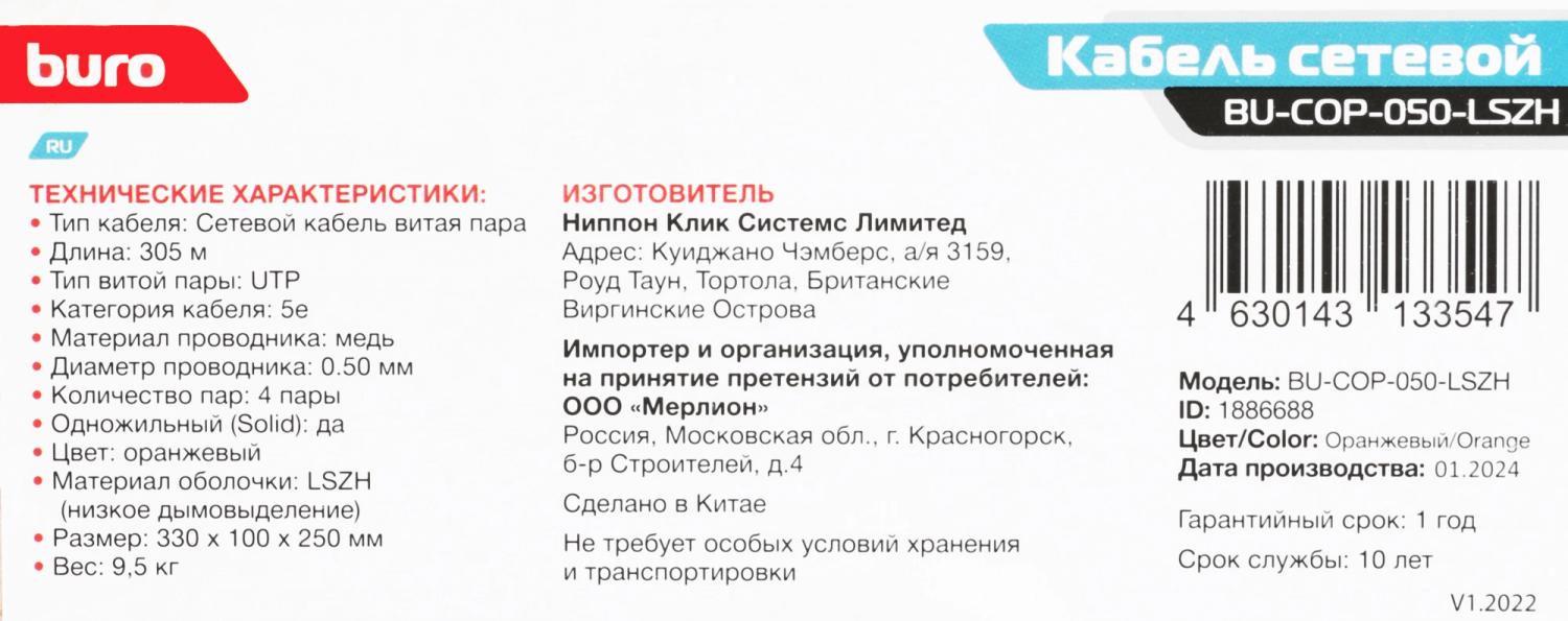 ITK Коммутационный шнур кат. 6 FTP PVC 5м оранжевый