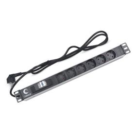 Cabeus PDU-8P-2IEC Блок евророзеток для 19" шкафов, гориз., 8 розеток, 10 A, выключатель, алюминиевый корпус, шнур 2 м, вилка IEC 320 C14