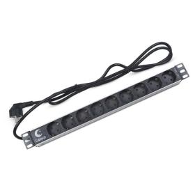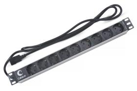 Cabeus PDU-9P-2IEC Блок евророзеток для 19" шкафов, гориз., 9 розеток, 10 A, без выключателя, алюминиевый корпус, шнур 2 м, вилка IEC 320 C14