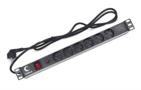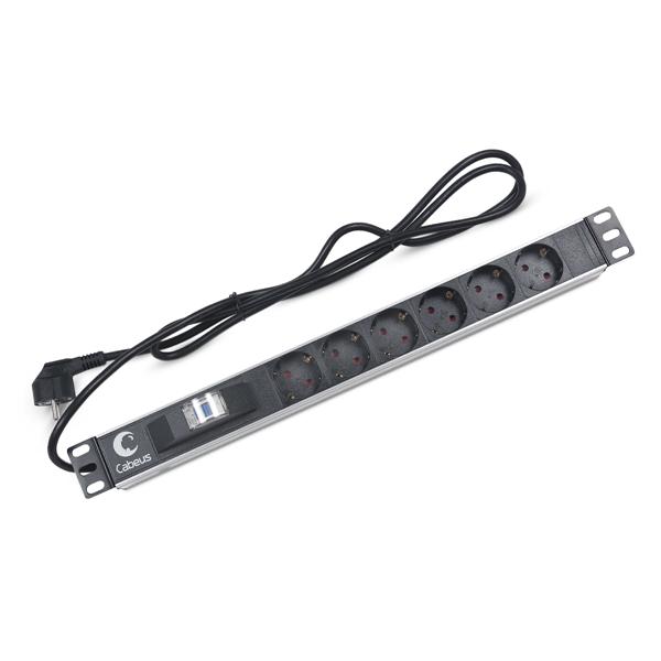 Cabeus PDU-6P-B-2EU Блок евророзеток для 19" шкафов, горизонтальный, 6 розеток, автоматический выключатель 16 A , шнур 2м, алюминиевый корпус, немецкий стандарт