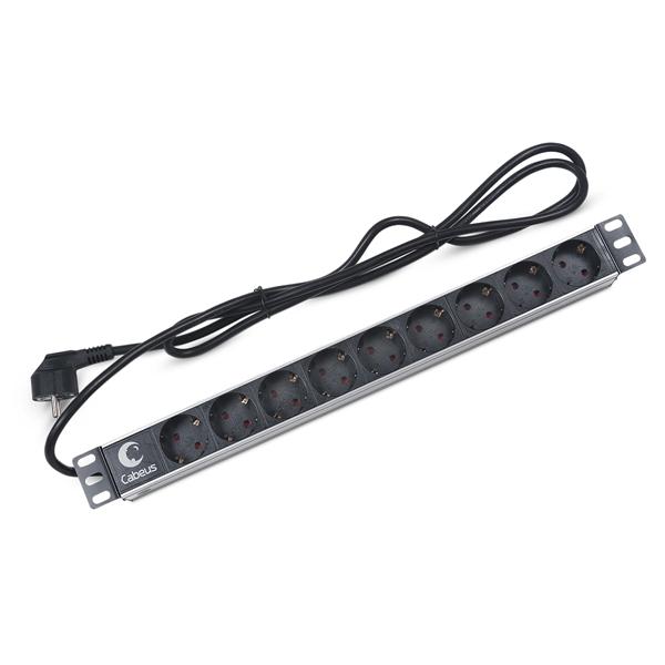 Cabeus PDU-9P-2EU Блок евророзеток для 19" шкафов, гориз., 9 розеток, 16 A, без выключателя, шнур 2м, алюминиевый корпус, немецкий стандарт