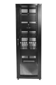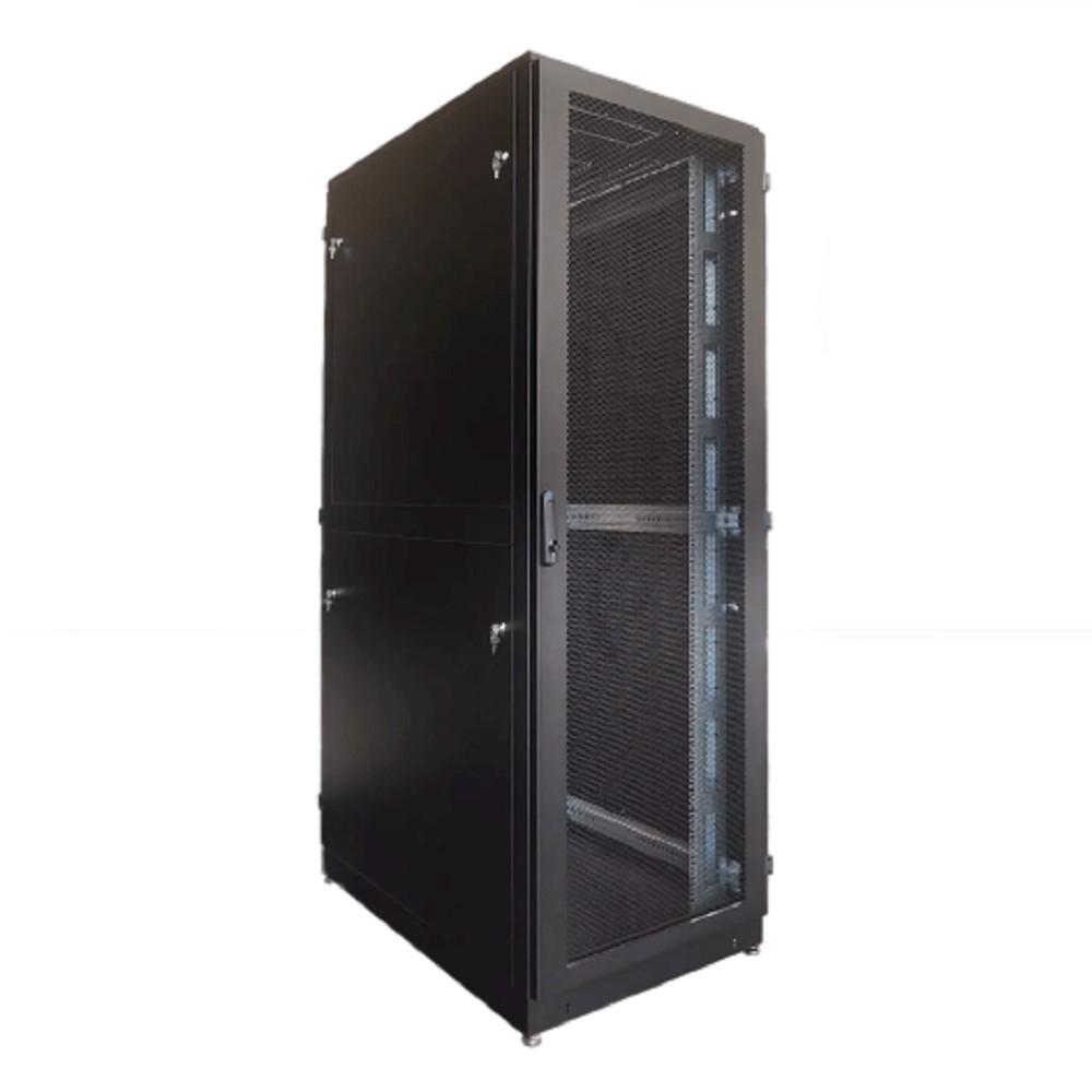 Шкаф серверный ПРОФ напольный 42U (800x1000) дверь перфор. задние двойные перфор. черный в сборе (В наличие в Москве)