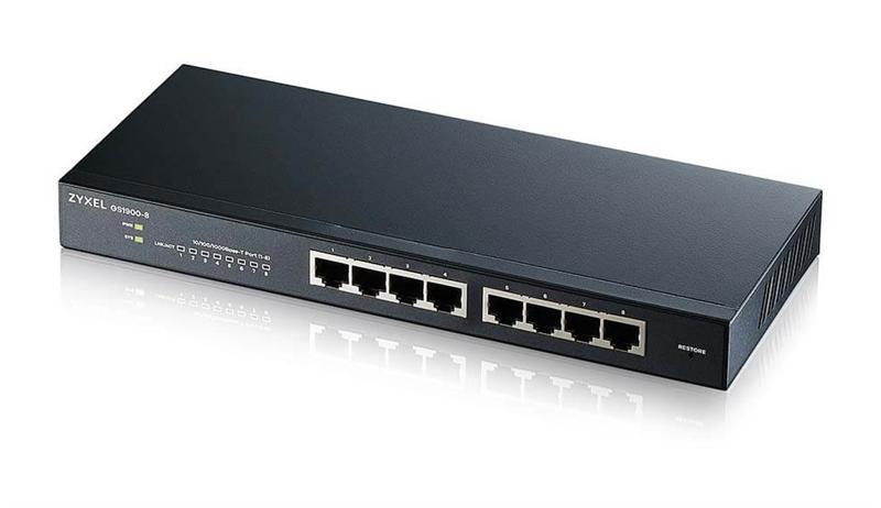 Коммутатор Smart L2 PoE+ Zyxel GS1900-8HP, 8xGE PoE+, настольный, бесшумный, бюджет PoE 70 Вт