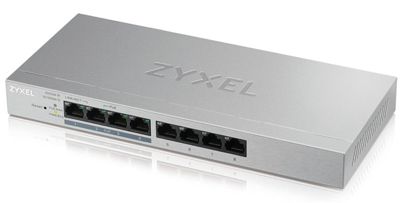 Коммутатор PoE+ Zyxel GS1008HP, 8xGE PoE+, настольный, металлический, бесшумный, бюджет PoE 60 Вт