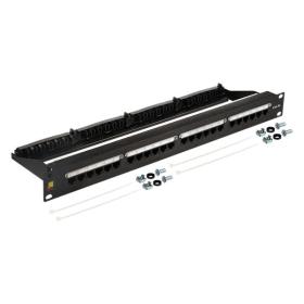 патч-панель Cabeus PL-24-Cat.6a-SH-Dual IDC Патч-панель 19" (1U), 24 порта RJ-45, категория 6a, полностью экранированная, с задним кабельным организатором