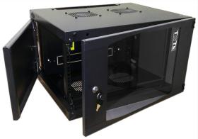 Шкаф настенный Cabeus SH-05F-6U60 / 60-BK Шкаф телекоммуникационный настенный 19" 6U 600x600x368mm (ШхГхВ) дверь стекло, цвет черный (RAL 9004)