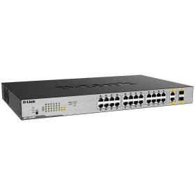 Коммутатор D-Link DSS-200G-28MP / A1A (L2) 24x1Гбит / с 4xКомбо(1000BASE-T / SFP) 24PoE 24PoE+ 370W настраиваемый
