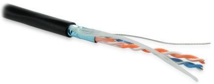 Hyperline FUTP2-C5-S24-SW-OUT-PE-BK-500 (500 м) Кабель витая пара экранированный F / UTP общий экран фольга категория 5 2 пары 24 AWG 2х2х051 мм однопроволочные жилы с металл.тросом PE внешний -40°C – +80°C черный