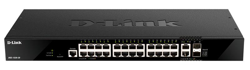 D-Link DGS-1510-28P / A1A PROJ Настраиваемый L2+ стекируемый коммутатор с 24 портами 10 / 100 / 1000Base-T, 2 портами 1000Base-X SFP и 2 портами 10GBase-X SFP+ (24 порта PoE 802.3af / at, PoE-бюджет 193 Вт)