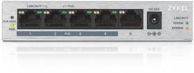 Коммутатор / ZYXEL GS1005HP Switch PoE +, 5xGE (4xPoE +), desktop, metal, silent, PoE budget 60 W