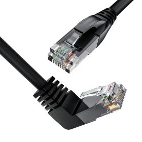 GCR Патч-корд прямой 2.0m UTP кат.5e, черный, левый угол, литой, ethernet high speed, RJ45, T568B, GCR-53151