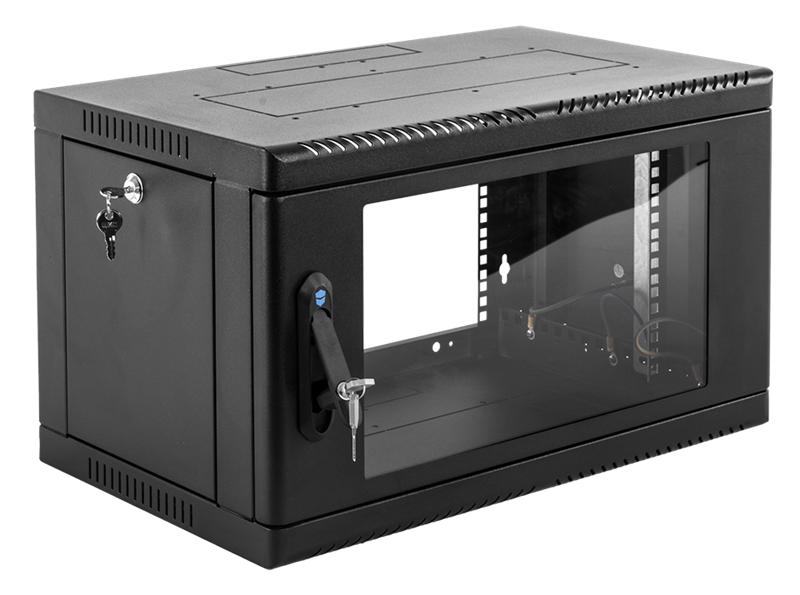 19" настенный шкаф 6U 600x450, стекл. передняя дверь, черный (плоск. упак)
