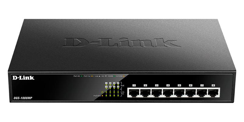 Коммутатор D-Link Неуправляемый PoE-коммутатор, 8x1000Base-T PoE, PoE-бюджет 125 Вт, корпус металл