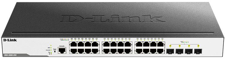 Коммутатор / DGS-3000-28LP / B Managed L2 Switch 24x1000Base-T PoE, 4x1000Base-X SFP, PoE Budget 193W, Surge 6KV, CLI, RJ45 Console, RPS, Dying Gasp