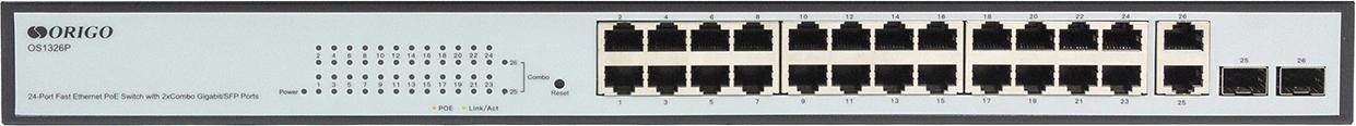 Коммутатор Origo OS2228P / 370W OS2228P / 370W / A1A 28x1Гбит / с 2xКомбо(1000BASE-T / SFP) 2SFP 24PoE+ 370W неуправляемый