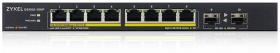 Коммутатор PoE+ Zyxel GS1100-10HP, 8xGE PoE+, 2xSFP, настольный, бесшумный, бюджет PoE 130 Вт, Kensigton lock