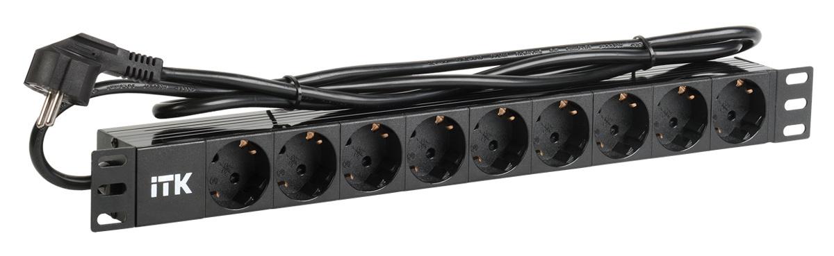 ITK PDU 8 розеток DIN49440 (нем. cтанд.) с LED выключателем, 1U, шнур 2м вилка DIN49441 (нем. станд.), профиль из ПВХ, черный