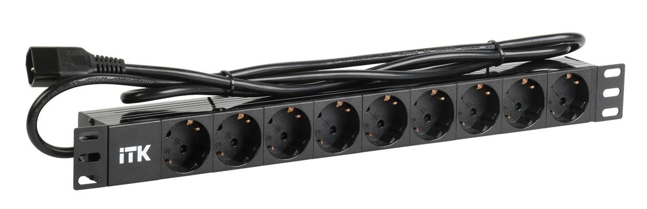 PH22-9D1-P PDU ITK 9 розеток нем. ст 1U шнур 2м вилка нем. ст ПВХ чер