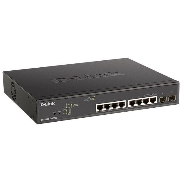 D-Link DGS-1100-10MPPV2 / A3A Настраиваемый L2 коммутатор с 8 портами 10 / 100 / 1000Base-T и 2 портами 1000Base-X SFP (порты 1-8 PoE 802.3af / at, порты 7-8 PoE 802.3bt, PoE-бюджет 242 Вт)