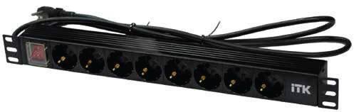 Блок розеток ITK PDU 6 роз. нем.ст. с выкл 1U каб. 2м вилка нем.ст ПВХ чер