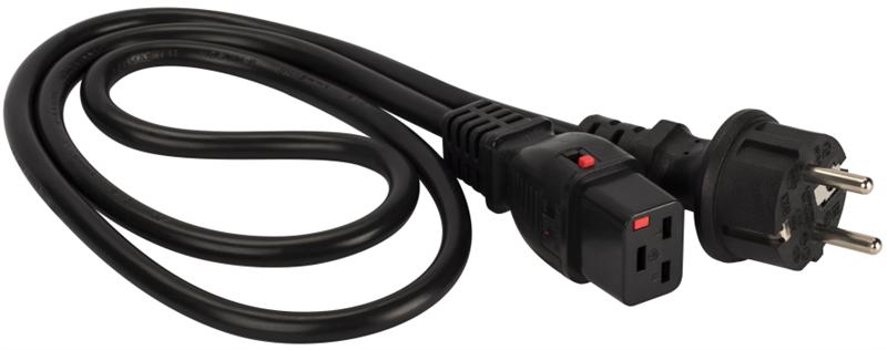 Шнур питания Шнур питания с блокировкой C19-Schuko прямая, 3х1.5, 220В, 16А, черный, 2 метра