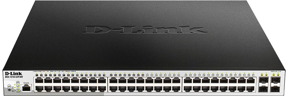 Коммутатор / DGS-1210-52P / ME / B Managed L2 Metro Ethernet Switch 48x1000Base-T PoE, 4x1000Base-X SFP, PoE Budget 193W, Surge 6KV, CLI, RJ45 Console, Dying Gasp
