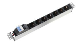 Hyperline SHE19-9SH-2.5EU Блок розеток / PDU 19" 9 розеток Schuko кабель питания 25м с вилкой Sсhuko (CEE7 / 7) 16А 230В чёрный 482.6x44.4x44.4мм