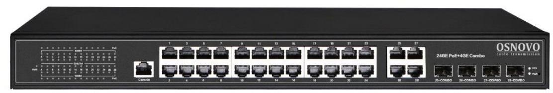 Коммутатор OSNOVO Управляемый L2 PoE коммутатор Gigabit Ethernet на 24 RJ45 PoE + 4 x GE Combo Uplink, до 30W на порт, суммарно до 400W