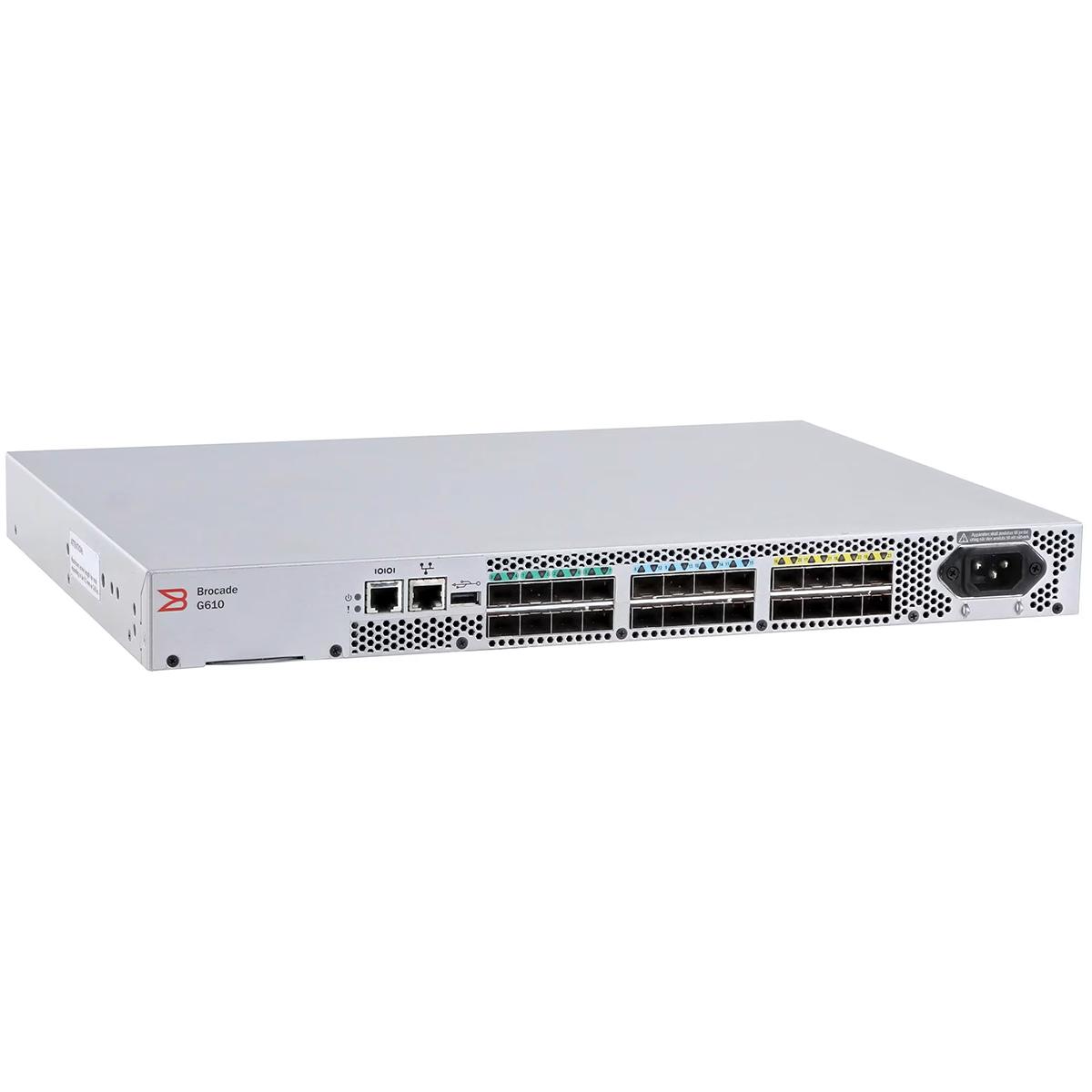 Коммутатор Brocade G610 24-port FC Switch, 8-port licensed, 8x 16Gb SWL SFP+, 1 PS, FOS Notupgradable, Rail Kit