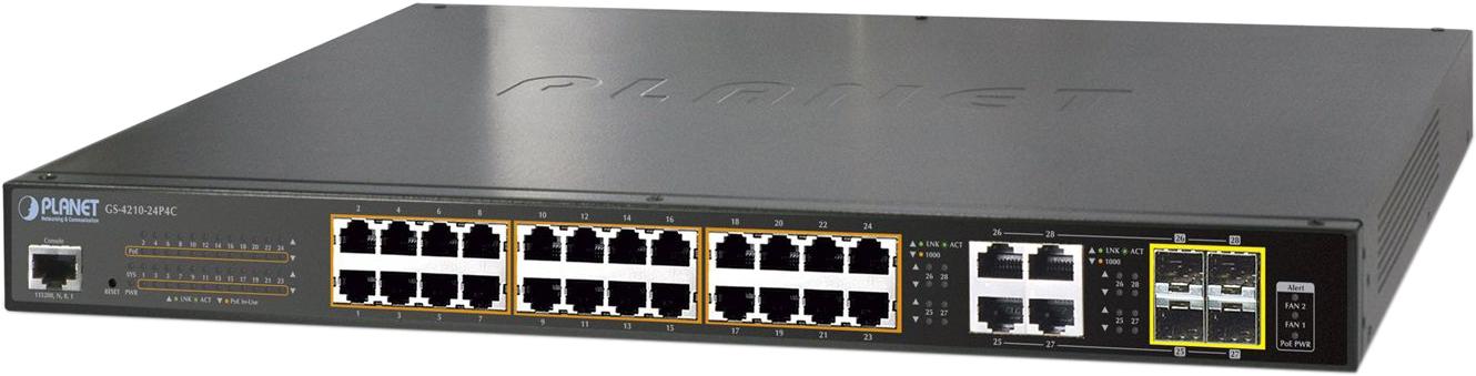 коммутатор / PLANET IPv6 / IPv4, 24-Port Managed 802.3at POE+ Gigabit Ethernet Switch + 4-Port Gigabit Combo TP / SFP (440W)