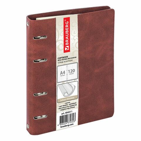 Тетрадь на кольцах БОЛЬШАЯ А4 (240х310 мм), 120 листов, под кожу, клетка, BRAUBERG "Main", коричневый, 404511