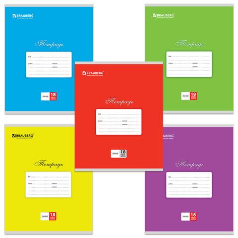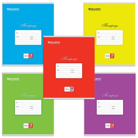 Тетрадь 18 л. BRAUBERG КЛАССИКА, линия, обложка картон, АССОРТИ (5 видов), 401992