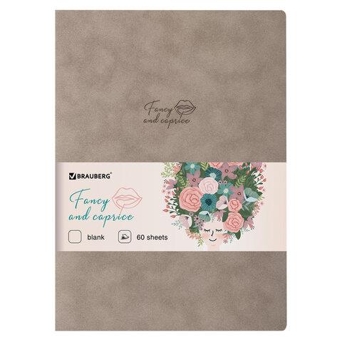 Тетрадь-скетчбук 60 л. обложка кожзам под замшу, сшивка, B5 (179х250мм), 70 г / м2, СЕРЫЙ, BRAUBERG CAPRISE, 403865