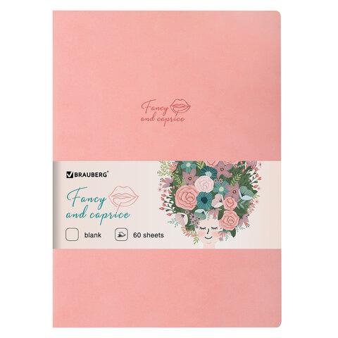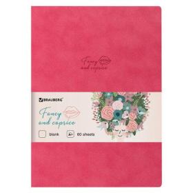 Тетрадь-скетчбук 60 л. обложка кожзам под замшу, сшивка, B5 (179х250мм), 70 г / м2, РОЗОВЫЙ, BRAUBERG CAPRISE, 403863