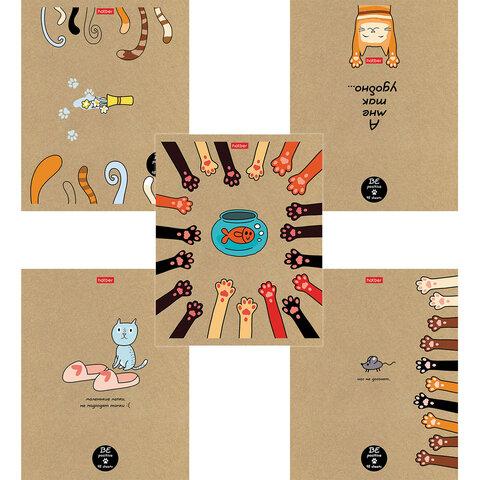 Тетрадь А5 48л. HATBER скоба, клетка, обложка крафт, "На мягких лапках" (микс в спайке), 066340, 48Т5В1