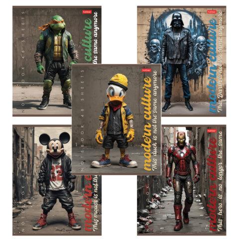 Тетрадь А5 48 л., HATBER скоба, клетка, обложка картон, "Нескучные герои" (микс в спайке), 088361, 48Т5В1