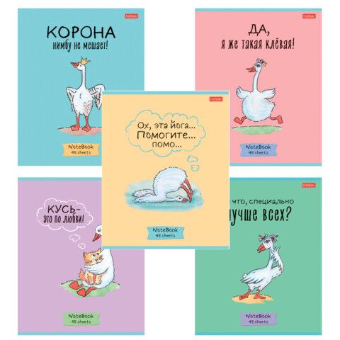 Тетрадь А5 48 л., HATBER скоба, клетка, обложка картон, "Гусь - веселюсь_Выпуск №2" (микс), 078789, 48Т5В1
