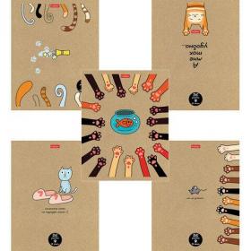 Тетрадь А5 48 л., HATBER скоба, клетка, обложка картон, "Мудрые котики" (микс в спайке), 088362, 48Т5В1