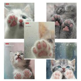 Тетрадь А5 48 л. HATBER скоба, клетка, обложка картон, "Кошарики" (микс в спайке), 075302, 48Т5В1