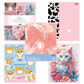 Тетрадь А5 48 л., HATBER скоба, клетка, обложка картон, "Розовые лапки" (микс в спайке), 090370, 48Т5В1