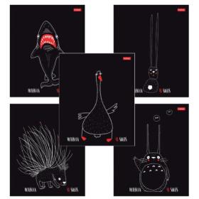 Тетрадь А5 48 л. HATBER скоба, клетка, ламинация, "I Like Black" (микс в спайке), 063153, 48Т5лВ1
